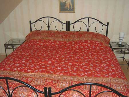 Das Schlafzimmer (mit Rauchmelder) ist mit zwei modernen Metallbetten ausgestattet, in welchen sehr gute Matratzen Garant für optimalen Schlaf sind. Die Betten können auch separat zusammengestellt werden (siehe <--separat). Ein kleiner, an das Kabelfernsehen angeschlossener Farbfernseher (mouseover) sorgt schon früh morgens vor dem Aufstehen für Unterhaltung und Information. Eine Klimaanlage bereitet im Sommer angenehme Einschlaf-Temperaturen. Sie finden die Betten standardmäßig zusammengestellt vor (siehe Bild oben). Sollten wir dies schon vor Ihrer Anreise ändern, teilen Sie es uns kurz mit. Tel.: 04961 74725 oder eljaba@wilh-schroeder.de |
